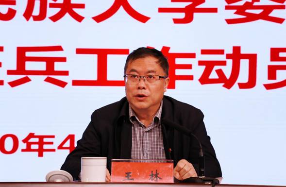 4月29日,我校在大学城校区学生活动中心大礼堂召开2020年征兵工作动员会。校领导褚光荣、王林、张鹏程、杨声国、熊元、吴嶷晖出席,全校副处级以上干部参加。会议由校党委副书记、校长王林同志主持。