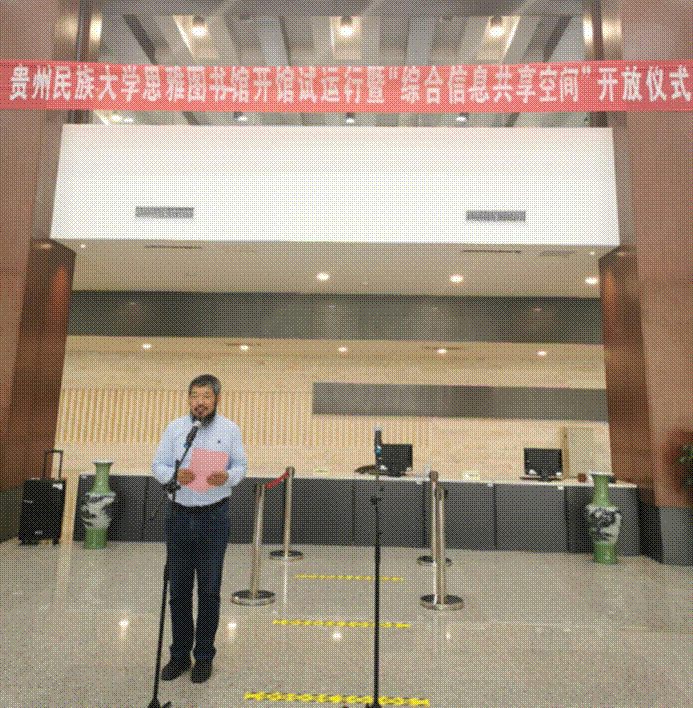 六十九载兴学梦,栉风沐雨谱华章。5月17日,是贵州民族大学建校69周年。早上10点,我校大学城校区思雅图书馆开馆试运行暨“综合信息共享空间”开放,学校又一处文化地标正式启用。校长王林、副校长周杰出席,相关部门负责人、图书馆部分员工、教师代表、学生代表等参加开馆试运行仪式。仪式由周杰副校长主持。