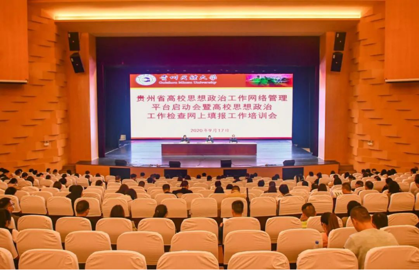 9月17日,贵州省高校思想政治工作网络管理平台启动会暨高校思想政治工作检查网上填报工作培训会在贵州民族大学大学城校区学生活动中心大礼堂举行。
