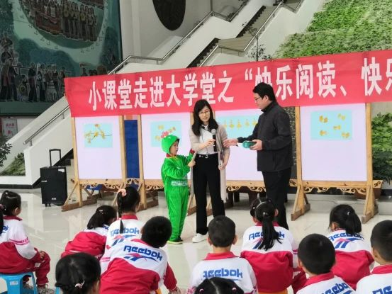 11月18日上午,图书馆和附属学校联合举办的“小课堂走进大学堂之‘快乐阅读、快乐成长 ’”主题活动在贵州民族大学逸夫图书馆一楼大厅成功举办。