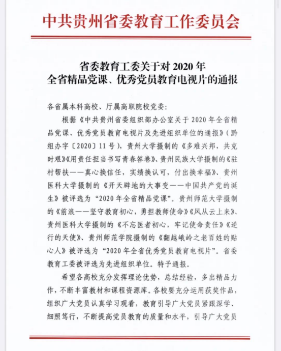 近日,省委组织部办公室下发文件,对2020年全省精品党课、优秀党员教育电视片及先进组织单位进行了通报,由我校党委组织部组织摄制,马克思主义学院副院长李昭勇主讲,省委教育工委推送的党课《驻村帮扶——真心换信任,实绩换认可,付出换幸福》被评为2020年全省精品党课。此次党课是贯彻落实《中国共产党党员教育管理工作条例》《2019—2023年全国党员教育培训工作规划》工作的一部分,是贵州民族大学开展“党课开讲啦”活动的重要成果。党课中,李昭勇以自己在镇远县报京村担任驻村第一书记期间工作为例,讲述了驻村干部如何将国家扶贫政策与帮扶点的实际相结合,与群众心与心交流,为群众做实事,以真心换信任,以实绩换认可,用付出为百姓谋幸福。