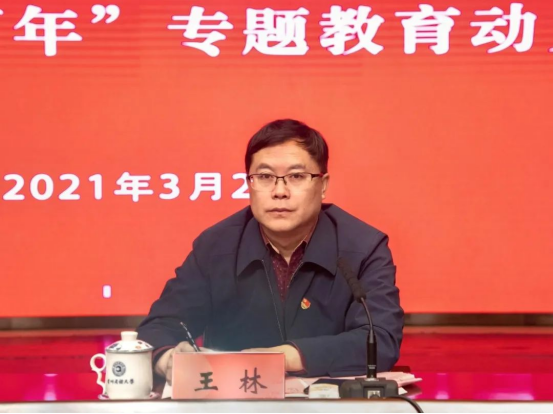 王林在主持会议时强调,要提高站位统一思想,充分认识开展党史学习教育的重要性。这次学党史的主题教育正当其时,是为实现学校高质量发展凝聚最广泛的思想共识,激发出我们党员干部迎难而上、开拓进取的奋斗精神。要明确目标聚焦重点,准确把握党史学习教育的核心要求。引领党员自觉从百年党史中汲取前进智慧、凝聚奋进力量,把此次学习教育与习近平总书记在贵州考察的重要指示精神、学校第二次党代会精神有机结合,高质量开展党史学习教育各项工作,推动学校改革发展。要加强组织领导,确保党史学习教育取得扎实的成效。开展党史学习教育是我们当前和今后一段时期的重要政治任务,全校各级党组织和全体党员、干部都要全身心的投入,做到学有所思、学有所悟、学有所得,要把握好学习教育的目标任务、基本要求和核心要义,用好以往主题教育的好经验好做法,办实事,解难题,扎扎实实开展具有自身特色、惠及师生、体现担当作为的党史学习教育,确保组织有力、措施到位、见到实效。