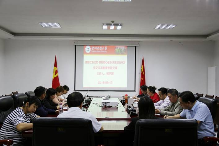 杨声国以“重拾红色记忆 感悟初心使命 矢志担当作为”为主题,为支部全体党员干部上了一堂生动的党史学习教育专题党课,校党委委员、宣传部、统战部部长任洁主持。杨声国从“苟坝会议召开的历史背景、基本概况、历史意义”等方面作了系统深入的分析解读。他指出,通过红色教育基地现场学习,重拾红色记忆,深刻感受老一辈共产党人的伟大革命精神,进一步从党的历史经验中汲取智慧和力量,牢记初心使命,传承红色记忆,从而达到“学史明理、学史增信、学史崇德、学史力行”的目标要求。