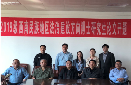 2021年6月4日,贵州民族大学西南民族地区社会治理法治建设方向2019级博士学位论文开题报告会在法学院三楼会议室举行。参加本次开题的老师有贵州社会科学院党委书记吴大华教授(博导)、贵州省人民政府法制办原巡视员高煜铭、贵州民族大学周相卿教授(博导)、贵州民族大学潘善斌教授(博导)、贵州民族大学人为科技学院杨武松教授(博导)。参与开题的博士生有黄婷婷、汪树穹、陈永富、周家洪、周晓莹。本次开题由吴大华教授担任组长并主持,部分在读博士生列席观摩。