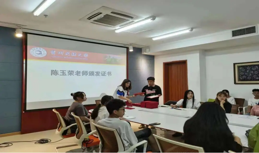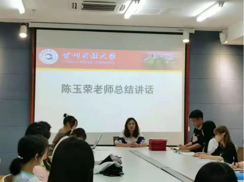贵州民族大学大学城校区心理健康协会于2021年6月21日下午18:30在学生活动中心1002室举行换届暨表彰大会,学工部心理咨询中心陈玉荣老师和心协全体成员参会。