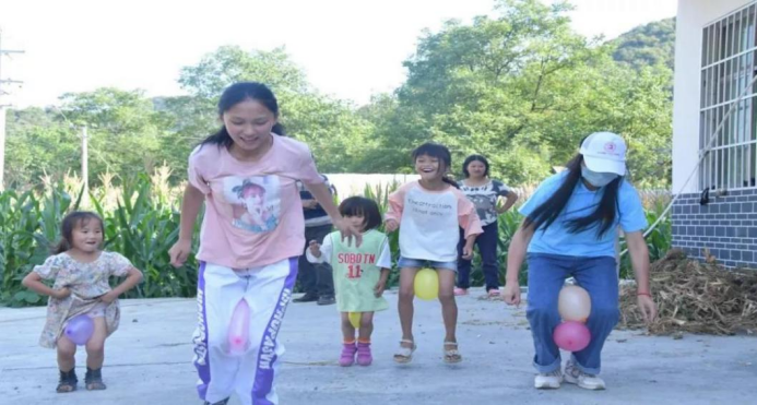经过前期问卷调查、家访,志愿者们提前了解了大石村留守儿童生活、心理、教育方面的情况,精心准备了内容丰富、形式多样的儿童趣味游戏活动。通过“破冰游戏”“马兰花开”“运送气球”等趣味十足的互动游戏,志愿者们和孩子们打成一片,玩在一起,陪伴孩子们度过不一样的七彩假期。