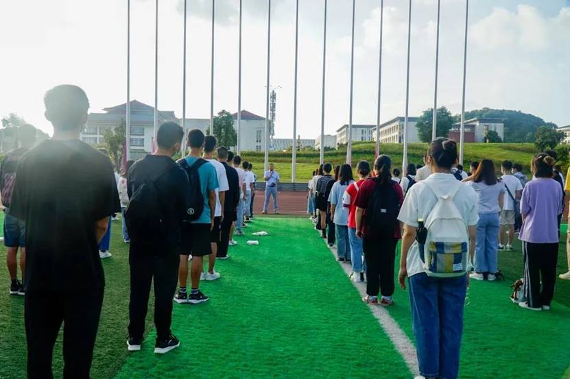 2021年9月6日早上7点10分 贵州民族大学大学城校区第二周升旗仪式在田径场举行,化学工程学院全体师生参加本次升旗仪式。