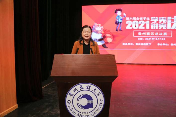 10月18日,由贵州省教育工委,省教育厅主办,贵州民族大学承办的贵州省第六届学生“学宪法 讲宪法”活动总决赛开幕式在我校举行。省委教育工委正厅长级副书记、省教育厅党组成员杨未,贵州民族大学党委副书记、校长王林,贵州民族大学党委委员、副校长周杰出席。全省各地参赛学生、指导教师,评委老师参加,副校长周杰主持开幕式。