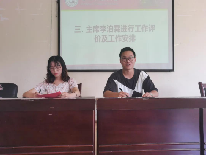 主席李泊霖作会议总结。他首先转达了舒启佳老师对团队成员的问候,希望各位小伙伴能够保持朝气蓬勃的状态,带着热情投入到接下来的工作当中。李泊霖还强调了团队成员积极性的问题,要求大家务必做到守时、准时。同时,他也针对学习分享会和技能培训两项工作提出意见,表明活动不仅是为了团队建设,更是一个提升自己能力的机会,望大家好好把握,积极参与。最后,十月换届将至,主席李泊霖认为学工助理团队需要新鲜血液也需要骨干带领,老成员是带领新成员熟悉并熟练工作的重要主力,以老带新服务师生,继续建设团队,开拓新天地,带领团队走向更美好的未来。