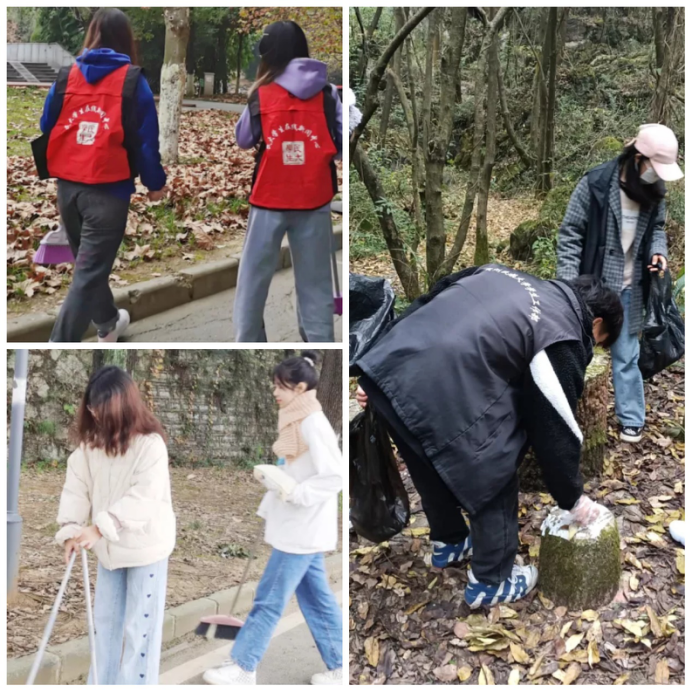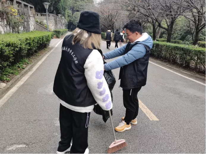 冬天已经到了,但秋天并没有走远,贵阳路口的落叶,教学楼角的枯枝,励志山上的塑料垃圾……为让我们的校园更加整洁,为大家营造更好的学习环境,锻炼同学们踏实肯干的精神,鼓励更多的同学爱护环境卫生,2021年11月13日,学工部五大学生组织的同学们开展校园清洁活动,加强劳动教育,共建美好校园。