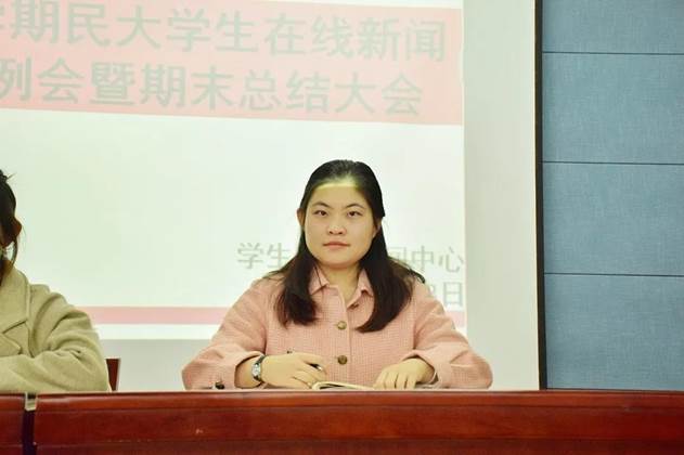 最后,指导教师王倩倩进行学生在线新闻中心未来工作指导发言。她表示:在期末来临之际,我们想要做到学习工作两不误,那就是把学习融入工作当中,并合理的安排时间。同时也希望每一位成员学到的东西要学会输出。对接下来的工作也作出了安排,要求新老校区负责人要合理安排假期工作。最后她总结出四点:1,当你觉得迷茫的时候,你就努力去学习,2,自己学到的知识要懂得怎样去输出,3,学习永远都是进行时,没有完成时,在合适的阶段要做最合适的事;4,个人的成长与组织的成长紧密结合,把组织给的任务当成一种资源,不仅锻炼了自己,也获得了成长。