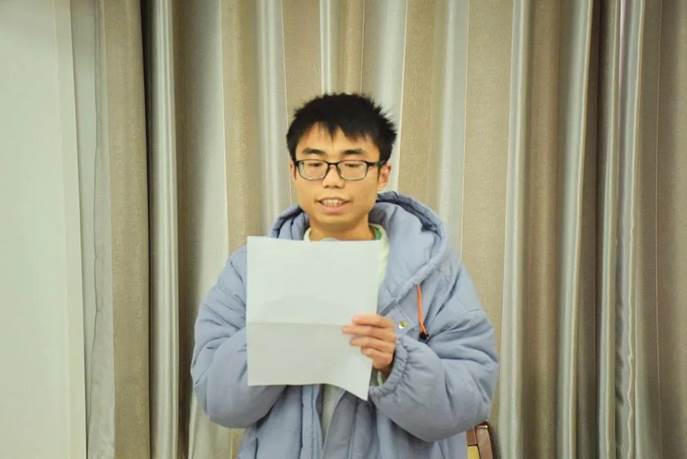 首先,采编部成员徐叶作为新成员代表发言,总结自己进入采编部以来的经历。在发言中他说到:民大学生在线新闻中心是一个很好的成长平台,希望在未来的日子里有更多机会去锻炼自己,提升自己,向同学和老师们学习更多的知识,积累更丰富的经验。