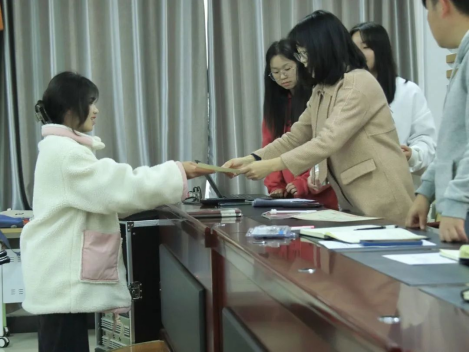 (“立冬时节,校园瞬间”摄影比赛中获奖的同学颁发获奖证书及奖品)