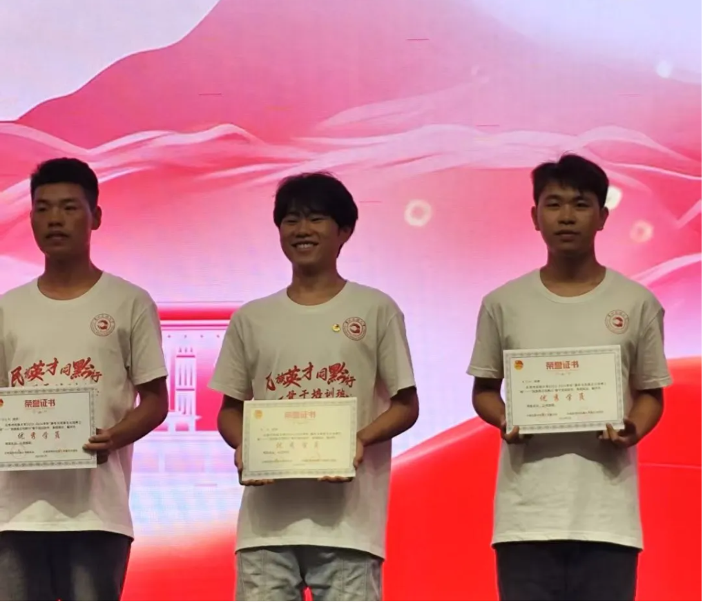 三下乡的烈日与星光,是他青春里最炽热的注脚。在黔南布依族苗族自治州平塘县,他与团队在那里留下了独属于他们的一抹绚丽志愿橙。他与团队在白天,走访街道进行社区调研、为社区学生们讲述铸牢中华民族共同体意识的内涵及其意义。当夜幕降临时,则在灯光下整理当天材料和实践经验。在这里,他们不仅探访了年迈的革命战士、见识了新时代的果农基地,也在一步一步地追寻南仁东先生的脚步,探寻天空的奥秘。三下乡的经历让罗越同学明白,这不是走马观花的巡礼,而是将身体弯成问号的田野调查。在锄头与学术的温差里,民生诉求从抽象概念沉淀为掌心老茧。同时,作为贵州民族大学首届资助宣传大使,罗越同学回到高中母校,用自身的经历阐述“知识改变命运”的力量。他以通俗易懂的话语解读这国家助学政策,构筑起政策与学子间的桥梁,助力为每一位求学者驱散未知的不安,共同攀登求知的巅峰。有人问他为何如此执着,他总笑着说:“若有一束光能照亮他人,我愿永远做提灯的人。”