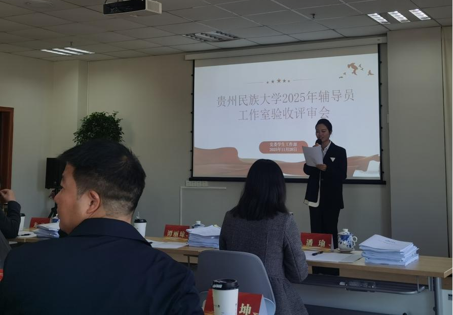 2025年11月28日,贵州民族大学党委学生工作部在北校区知雨楼416会议室举办辅导员工作室验收评审会。会议旨在全面检验各校级辅导员工作室的建设成果,总结交流工作经验,进一步推动我校辅导员工作室标准化、规范化建设,推动辅导员队伍专业化、职业化发展。来自校外的评审专家、各校级工作室主持人、学校党委学生工作部负责人、各学院副书记及辅导员代表共同参与了此次验收考核会。