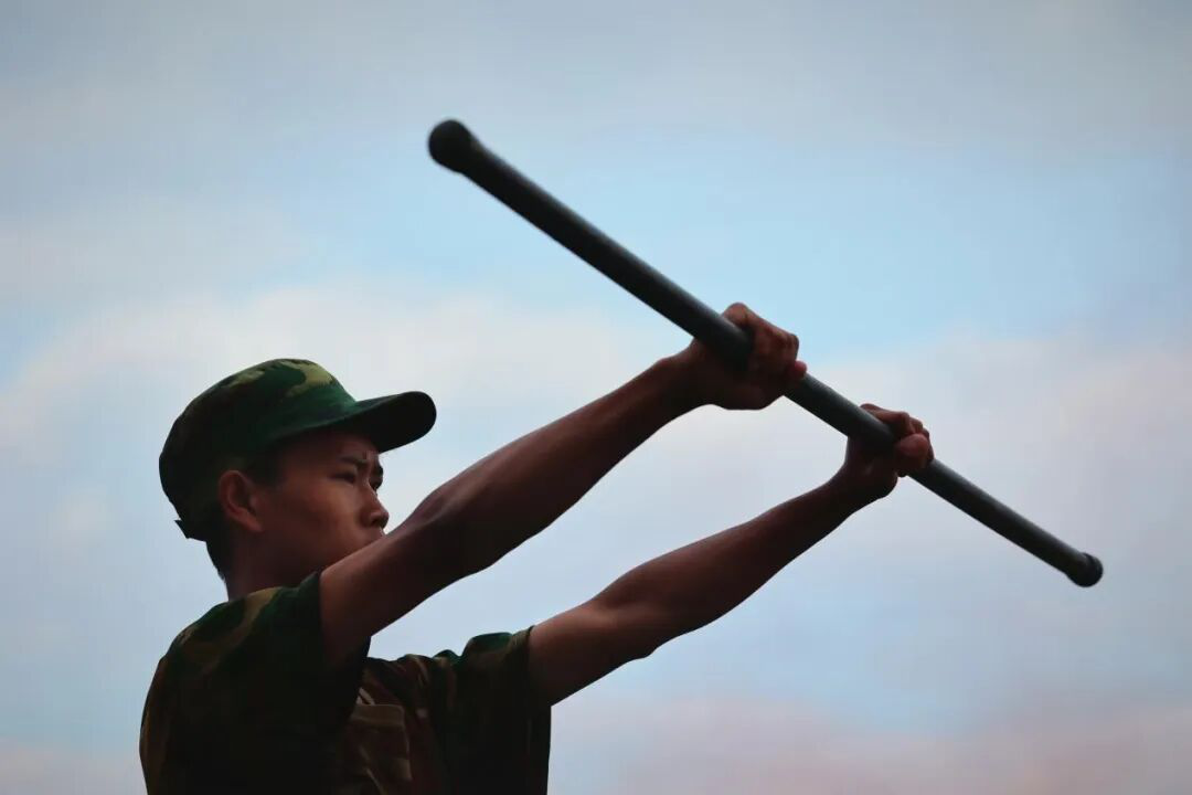 军训成果汇演在雄壮的国歌声中拉开帷幕。队列整齐、声音洪亮,英姿飒爽。党旗方阵、国旗方阵、师旗及持枪方阵、参训教师方阵、各学院代表方阵精神抖擞、步伐铿锵有力,喊着嘹亮的口号走过主席台接受检阅。参训学生军姿挺拔,展现了昂扬的斗志和蓬勃的气势。擒敌术、刺杀操、匕首操、应急棍、战术等成果汇报赢得现场观众阵阵掌声和欢呼声。经过多天的严格训练,同学们军容整洁、姿态端正,队列动作、表演动作干净利落,高标准完成了军训的各项内容,展现出了贵州民族大学学子风采。