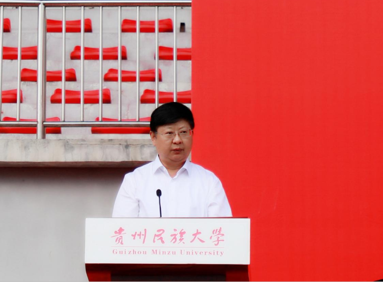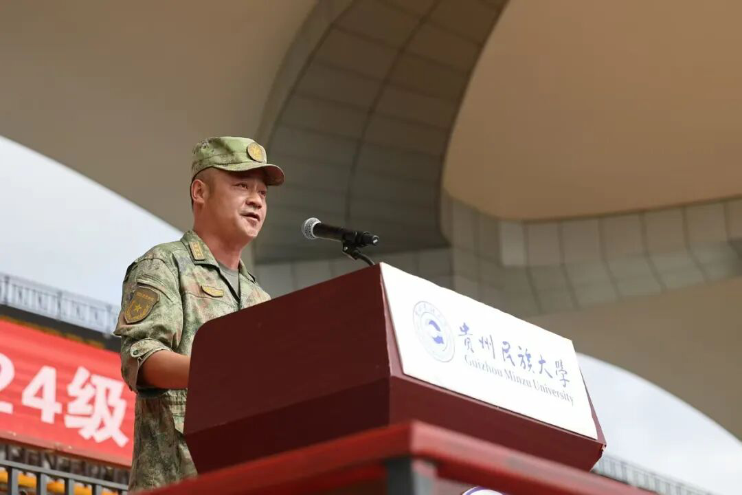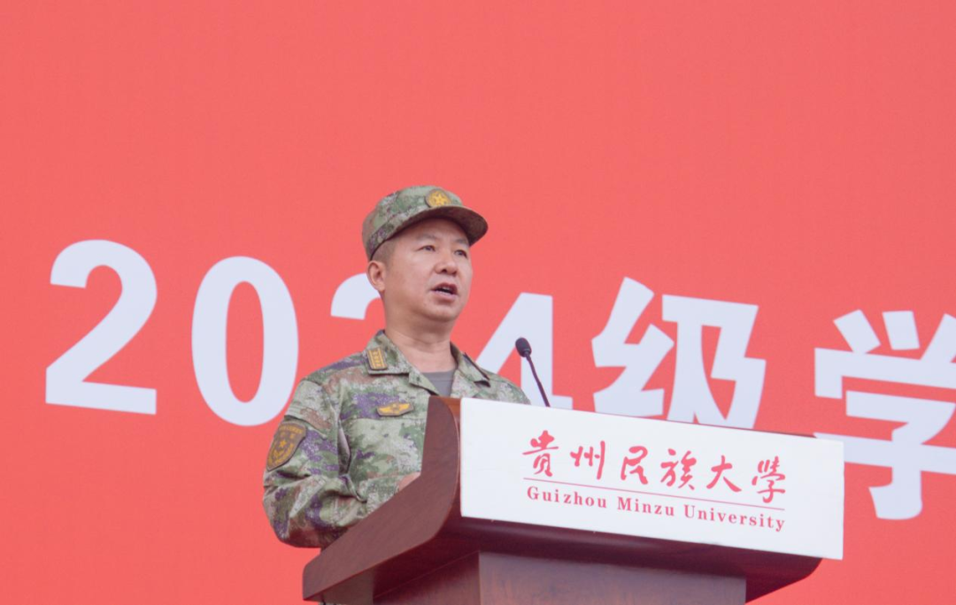 校党委书记褚光荣,校党委副书记、校长王林,校党委副书记杨声国,校党委副书记、军训师政委蒋雪明,校党委委员、副校长周杰,校党委委员、纪委书记、省监委驻贵州民族大学监察专员吴嶷晖,校党委委员、副校长任达森,校党委委员、副校长,军训师师长汪红,副校长崔海洋,校党委委员、组织部部长奉振,95580部队副部队长万为新,花溪区人武部部长田鹏出席。学校各职能部门主要负责人,各学院党政领导班子成员、各学院辅导员、2024级新生各班班主任及教师代表、2024级全体新生参加大会。大会由汪红主持。
