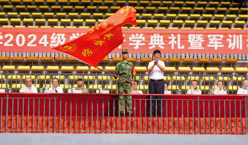 校党委副书记、校长王林为北校区2024级军训师授旗