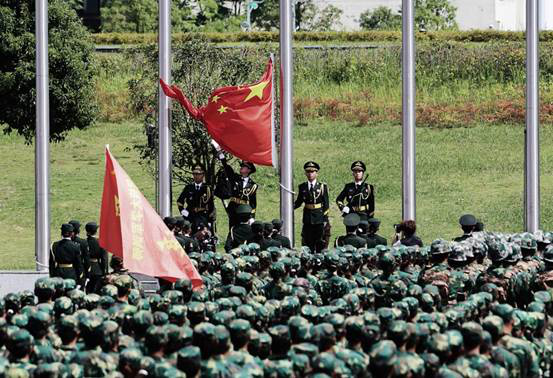 伴随着雄壮的国歌声,五星红旗冉冉升起,全体参会人员并行注目礼。
