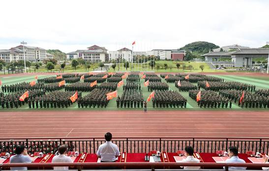 9月12日上午,我校在南校区田径场举行2025年秋季应征入伍新兵欢送会。校党委书记吕国富出席并致欢送辞。校党委副书记蒋雪明宣布定兵名单,校党委委员、副校长董强主持欢送会。
