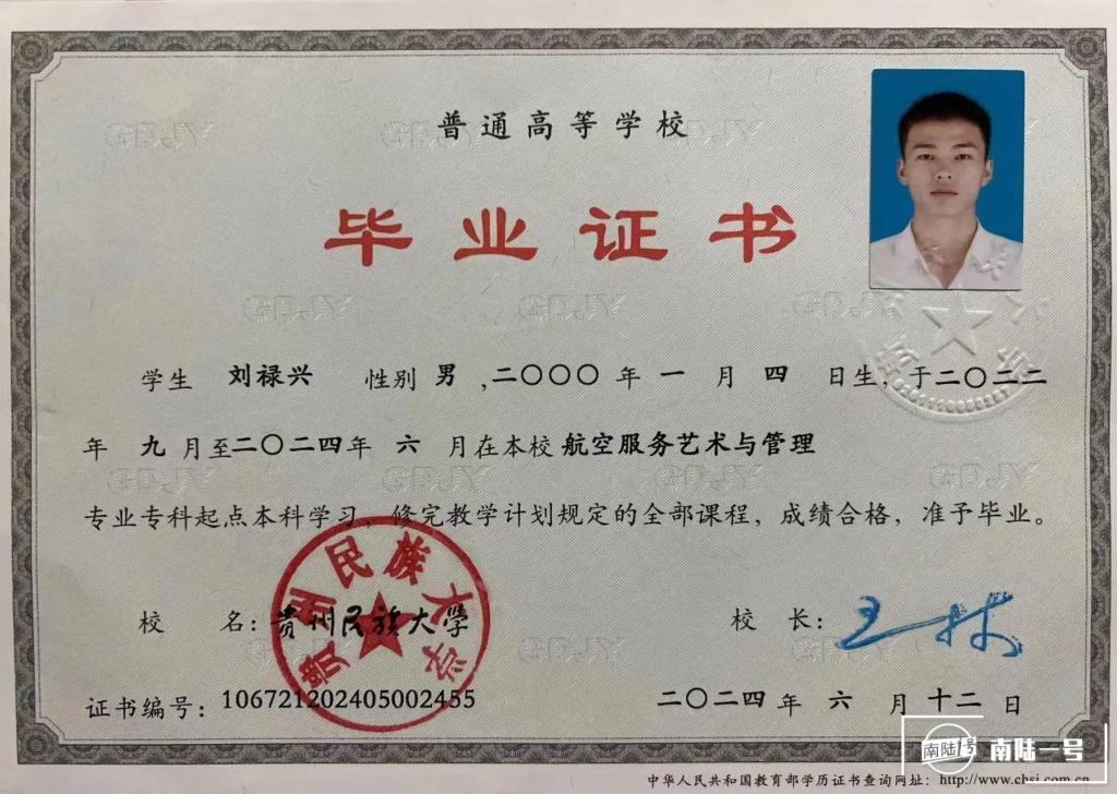 2024年刘禄兴顺利拿到本科毕业证书