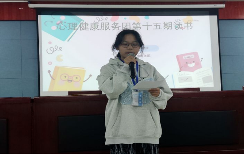 微风拂面,鸟语花香。在这春意盎然的季节里,贵州民族大学南校区心理健康 服务团于2024年4月21日19:00开展了第十五期心理健康主题读书会,本期读书 会由龚久芯担任主持人,韦启妙和张兴棋媛进行主讲,吸引了200余名对此次书籍 感兴趣的同学们参与其中,本次读书会活动目的在于激发同学间的互动交流,培养 阅读兴趣,共享书籍所带来的心灵沐浴,以及营造浓厚的文化气息。
