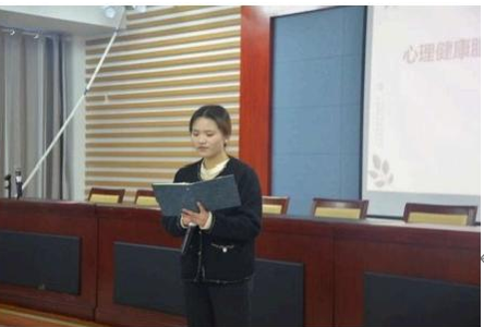 春光明媚,四月初始,为了让同学们减少烦恼,减少抱怨,更好的以积极乐 观的人生态度面对大学生活,贵州民族大学大学城校区心理健康服务团于2022年 4月1日晚七点在学生活动中心2001室开展了第十一期心理健康主题读书会。本期 读书会由秘书部部长毕华梅主持、咨询部张觉囡主讲,分享威尔 ·鲍温的《不抱怨的世界 》。