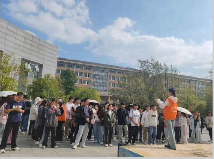 贵州民族大学党委学生工作部于2024年11月9日14:30-17:00在北校 区颂雅楼前小广场开展心理素质拓展活动。本次活动由大学生心理健康服 务团承办,秘书部成员穆文艺担任主持。此次活动参与人员来自不同学 院,总计100名学生。活动旨在通过参与团队游戏让同学们放松身心,培 养挑战自我的意志力以及合作能力,促进学生人际关系和谐发展,展现积 极进取的精神面貌。