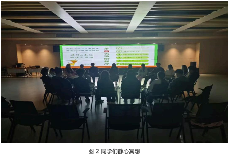 热身活动结束后, 一段舒缓的静心冥想带领大家暂时远离外界喧嚣,以更加 平和的心境投入到学习之中。随后,大家一起观看马歇尔 · 卢森堡博士于2000年在 旧金山举办的非暴力沟通培训视频。同学们通过观看视频既能感受马歇尔博士的 语言表达魅力和非暴力沟通的精神,也为改善人际关系提供科学有效的方法,更 让同学们深刻认识到非暴力沟通在日常人际交往中的重要性与实用性。