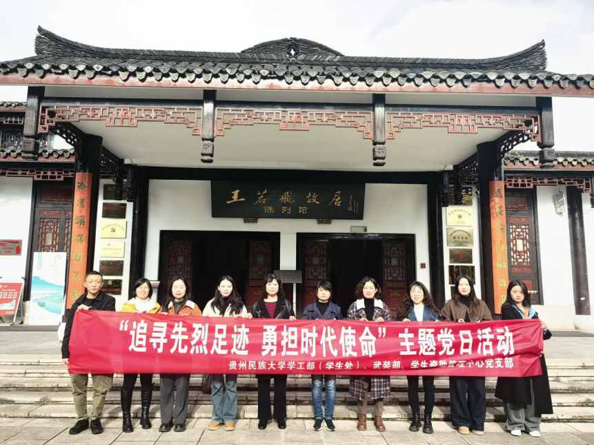 为深入学习贯彻习近平新时代中国特色社会主义思想,传承红色基因,弘扬革命精神,切实增强党员的党性修养和使命担当,11月6日下午,贵州民族大学学工部(处)、武装部、学生资助管理中心党支部赴安顺王若飞故居开展“追寻先烈足迹 勇担时代使命”主题党日活动,实地感悟革命先辈精神,将红色力量转化为推动工作的实际动力。