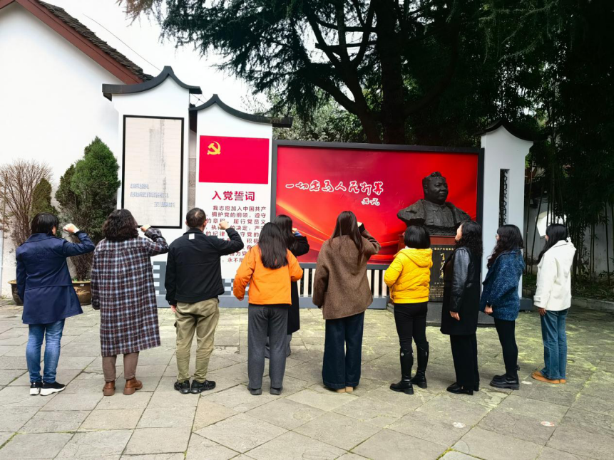 在故居广场的鲜红党旗下,全体党员整齐列队,高举右拳,在领誓人的带领下庄严宣誓。“我志愿加入中国共产党,拥护党的纲领,遵守党的章程……”铿锵有力的誓言回荡在故居上空,既是对革命先辈的深切缅怀,更是对党的绝对忠诚的郑重承诺,进一步筑牢了全体党员的理想信念根基,强化了责任担当意识。
