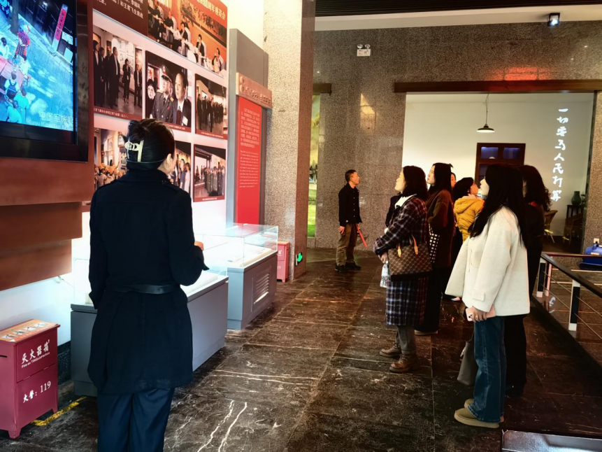 在王若飞故居,全体党员怀着崇敬之心,在讲解员的细致引导下,先后参观了陈列室、起居室等场所。泛黄的史料文献清晰勾勒出革命历程,珍贵的实物展品承载着峥嵘岁月记忆,生动的场景复原再现了奋斗瞬间,让党员们全方位了解了王若飞同志从早年留学求索到投身革命洪流,从狱中坚守信仰到为民族解放事业奉献终身的生平事迹。
