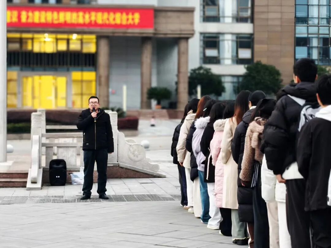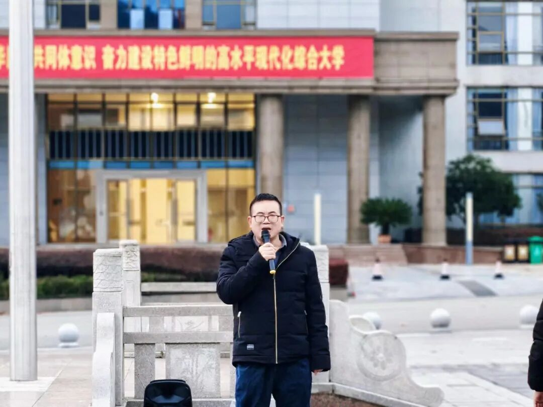 升旗仪式后,民族学与历史学学院李浩副书记、传媒学院伍顺比副院长发表国旗下讲话。