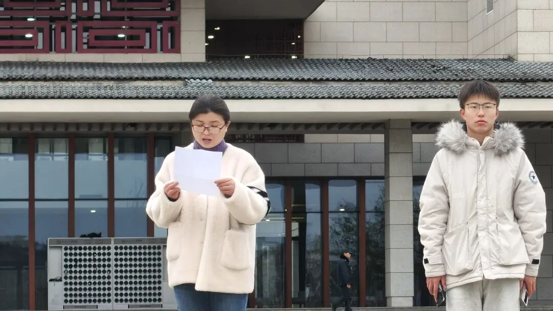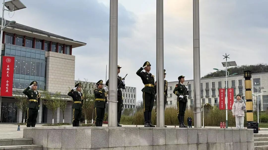 时针指向7点20分,随着清脆响亮的号令声发起,国旗护卫队肩扛鲜艳的五星红旗,挺拔着身姿,眼神坚毅而专注,步伐坚定地护送国旗入场。国旗在庄严而雄壮的歌声中,冉冉升起,向着澄澈的蓝天不断攀升。全体师生肃立行注目礼,齐声高唱国歌,眼神中满是对祖国的热爱与忠诚。