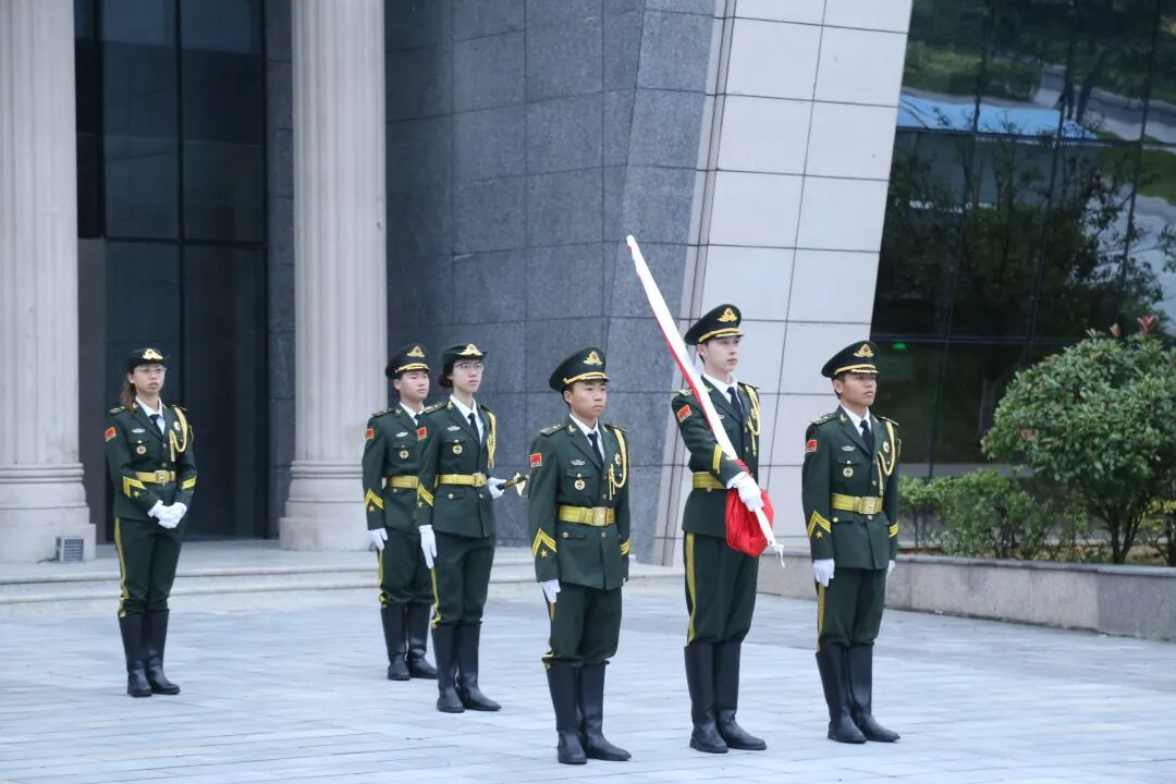 7点20分,国旗护卫队迈着坚定有力的步伐向升旗台走去。护旗手们队伍整齐划一,身姿挺拔,双手稳稳托着五星红旗,红色的旗帜在微风中轻轻舒展。当国歌响起后,国旗缓缓升起,全体师生庄严肃立,行注目礼并唱响国歌。歌声渐渐停歇,整个校园陷入短暂的寂静,唯有国旗与晨风的低语,诉说着此刻的庄严与赤诚。