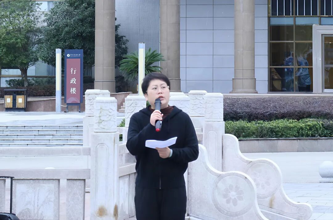 升旗仪式后,东盟人文学院书记罗敏围绕“知旗爱国,为国增辉”与“国歌励行,成长担当”展开讲话。强调要深植“知旗爱国”的赤子之心,国旗和国歌承载着特殊意义,应将对它们的崇敬热爱转化为信仰与自觉;要践行“为国添彩”的青春行动,作为民族类院校且掌握非通用语言的学生,要利用语言优势讲中国故事、促交流合作,以专业所学为国家发展贡献力量;最后寄语同学们立大志、成大才,为中华民族伟大复兴及中国与东盟友好合作贡献青春力量。