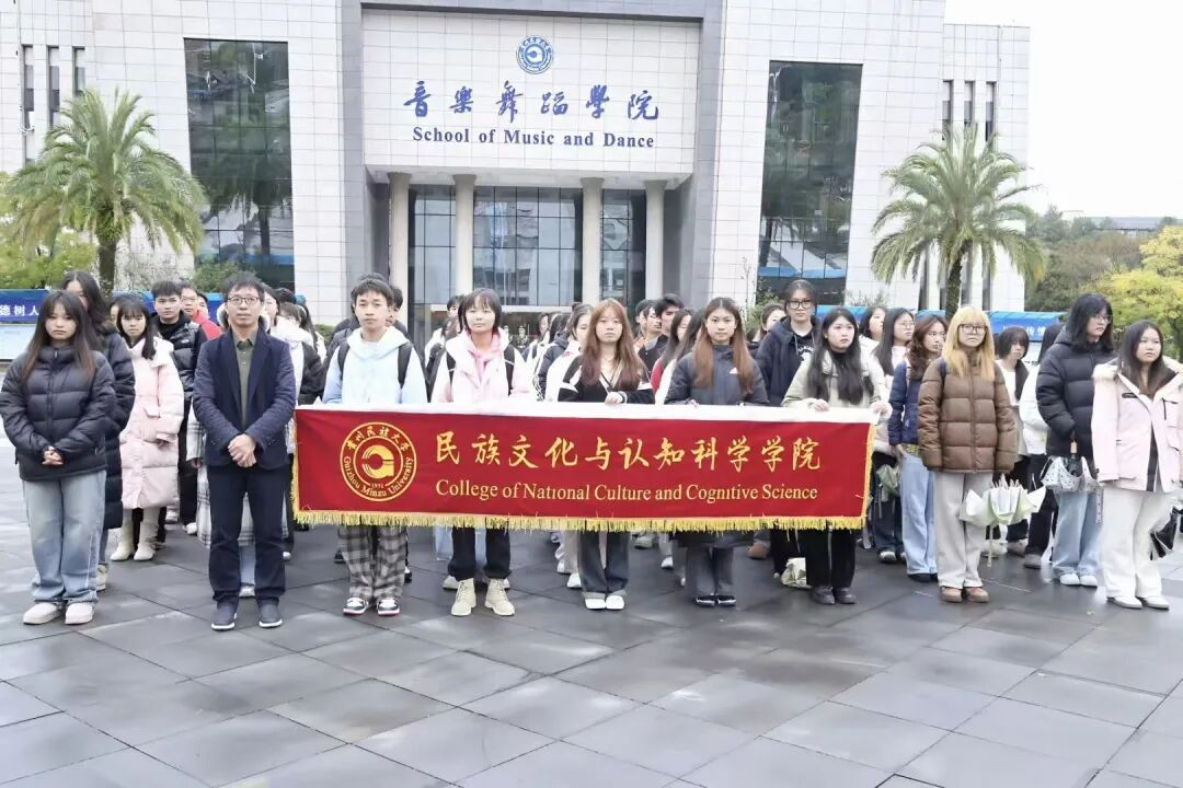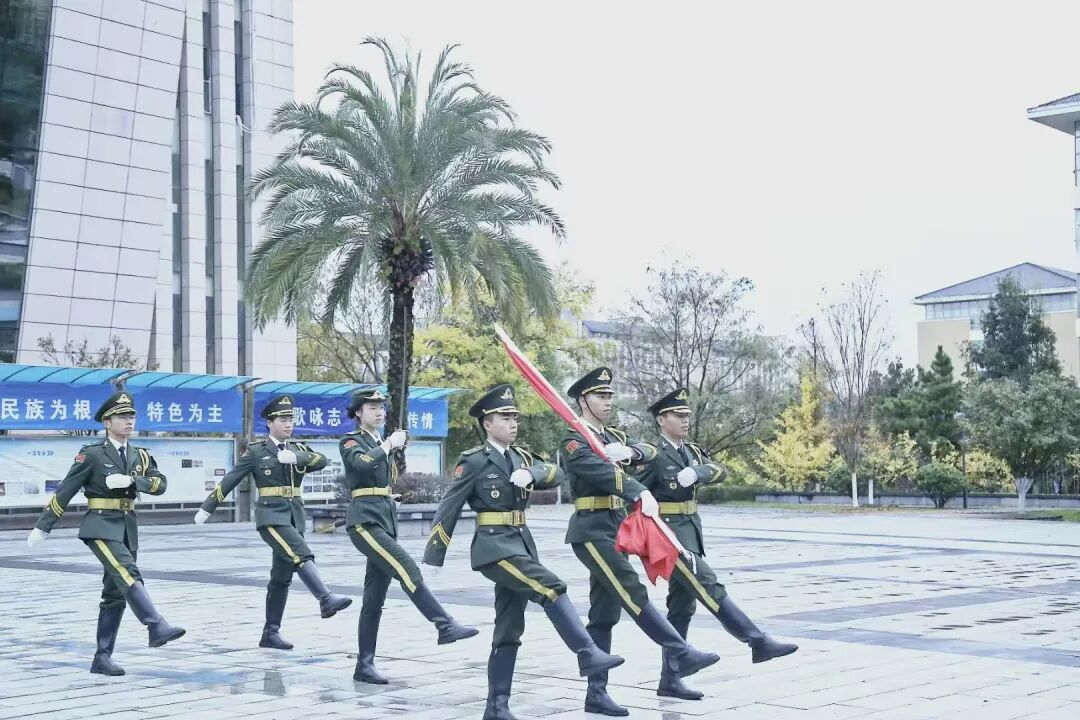 2025年11月10日星期一上午7时,雨水洗礼过后的校园,伴随梧桐树上的水珠,一场庄严肃穆的升旗仪式在贵州民族大学南北校区拉开帷幕。民族文化与认知科学学院和民族医药学院师生代表早已在国旗台下列队集结,共同迎接这一庄重严肃的时刻。 他们身着整洁统一的服装,怀着满腔热忱与敬意,静静的迎接那庄严而神圣的升旗仪式。