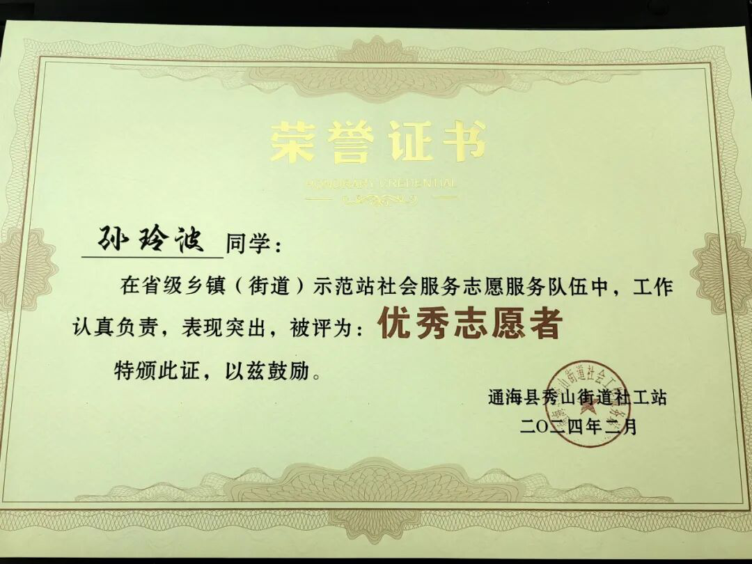 孙玲波同学既深耕学术理论,又扎根现实土壤。在2024年的通海县“返家乡”社会实践与“三下乡”的个人实践中,她始终保持着一位学者应有的敏锐观察力与实践行动力。在秀山街道社工站的志愿时光里,她将身影融入进走家串户的关切中、将巧思织进小组活动的蓝图里,将热忱化作社区活动的助燃剂。她以专业的素养为灯,以人文的关怀为火,尽自己最大的努力帮助每一户困难家庭,温暖着社区居民的心。这份学术思维与社会实践的深度交融,亦体现于孙玲波同学的未来学术创作之中。她秉持专业视角与学术严谨性,深入社区治理的微观脉络,将社区服务场景中的日常实践与人际互动转化为学术观察,那些街巷间的低语、服务台前的恳切、小组活动里的笑泪交融,在她笔下不再是孤立的片段,而是汇聚成洞察社区脉搏的鲜活注脚,最终镌刻为论文中理性而饱含温度的学术篇章。