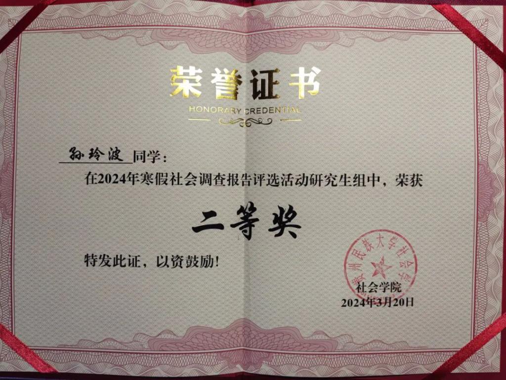在面对众多朋友与老师的肯定时,孙玲波同学并没有骄傲自负,而是始终保持着一位学者应有的清醒。在她看来,“学术荣誉是阶段性的路标,不是终点。”社会学人的纯粹性恰在于此——既要有“板凳要坐十年冷”的治学定力,更要有“把学问做到群众心坎里”的实践自觉。因此,孙玲波同学不仅在学术研究上不断深耕,也积极投身于社会实践。她相信,学问的价值不在于虚华的荣誉,而在于真正为人们解决实际问题,在社会中产生积极的影响。在她看来,只有将理论与实践紧密结合,才能实现学术的真正意义,才能让学术成为推动社会进步的力量。当青春的思辨扎根现实的土壤,理论的光芒终将照亮社会治理的“最后一公里”。这,便是新时代社会学人孙玲波——一位永远在乡土与学海之间往返跋涉的追光者。