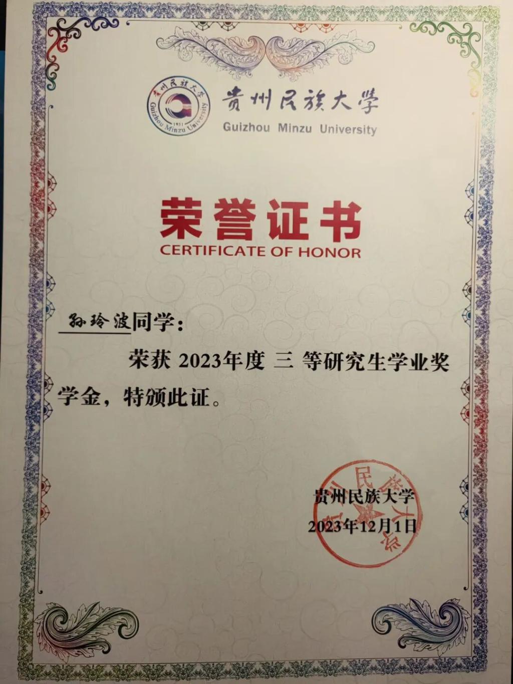 孙玲波,女,中共党员,云南省玉溪市通海县人,就读于贵州民族大学社会学院2023级社会学学硕班。于2021年6月22日加入中国共产党。在校期间,荣获2023年度研究生学业奖学金、2024年寒假评选活动研究生组二等奖、“优秀志愿者”荣誉证书等奖项,其学士论文《社区营造视角下的城市老旧小区改造——以玉溪市G家园为例》入选中国社会学会2024年学术年会93号分论坛“全面深化改革与民族地区社会治理现代化”年会论文集。