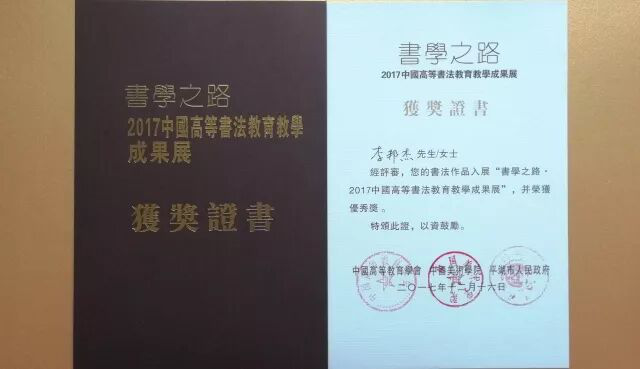 2017年 书学之路--第二届全国高等书法教育教学成果展最高奖
