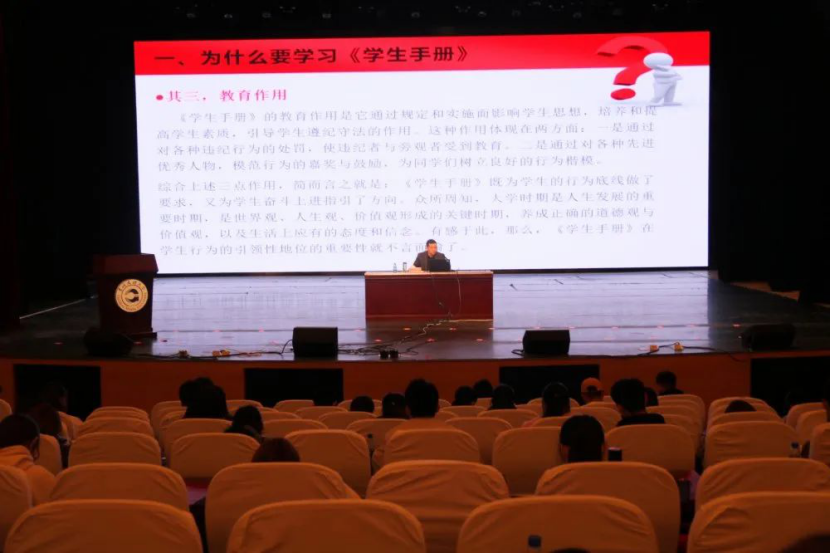 11月7日下午,贵州民族大学党委学生工作部(学生处)、武装部副部(处)长王朝举老师在大学城校区大礼堂,组织2020级全体学生干部及辅导员学习《贵州民族大学学生手册》。
