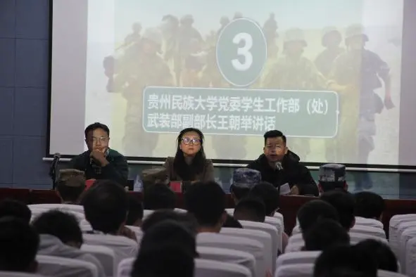 为鼓励学生积极投身国防,进一步深化国防教育,2021年11月4日13:00,建筑工程学院在学生活动中心2001会议室召开了2022年春季征兵入伍动员大会。本次会议由建筑工程学院学生科(负责学院征兵工作)周泉老师主持,贵州民族大学党委学生工作部、武装部副部长王朝举,建筑工程学院党委书记何璘、建筑工程学院退役老兵代表石昌常以及数名退伍老兵参加会议。由于疫情原因,参会人员主要有2018级学生以及学院在校生各班班长。会议伊始...