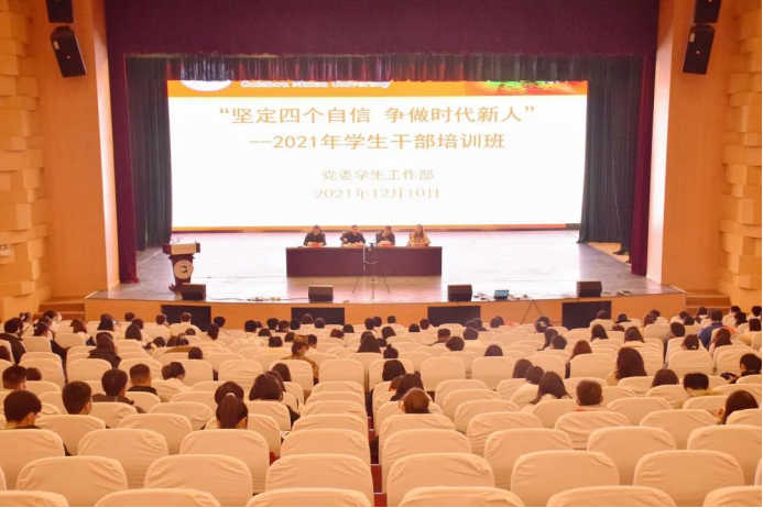 坚定四个自信,争做时代新人 | 贵州民族大学2021年学生干部培训开班仪式暨第一讲为深入学习贯彻习近平总书记视察贵州重要讲话精神,学习贯彻习近平总书记在庆祝中国共产党成立100周年大会上的重要讲话精神、以及党的十九届六中全会精神,大力推进我校学生干部队伍整体素质,教育引导学生坚定四个自信,贵州民族大学2021年学生干部培训班于12月10日下午16:00分别在大学城校区学生活动中心大礼堂(线下方式)、花溪校区15栋圆形会...