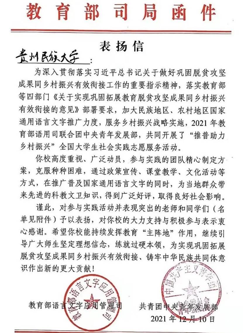 喜报 | 贵州民族大学这支队伍荣获2021年“推普助力乡村振兴”全国大学生社会实践志愿服务优秀团队